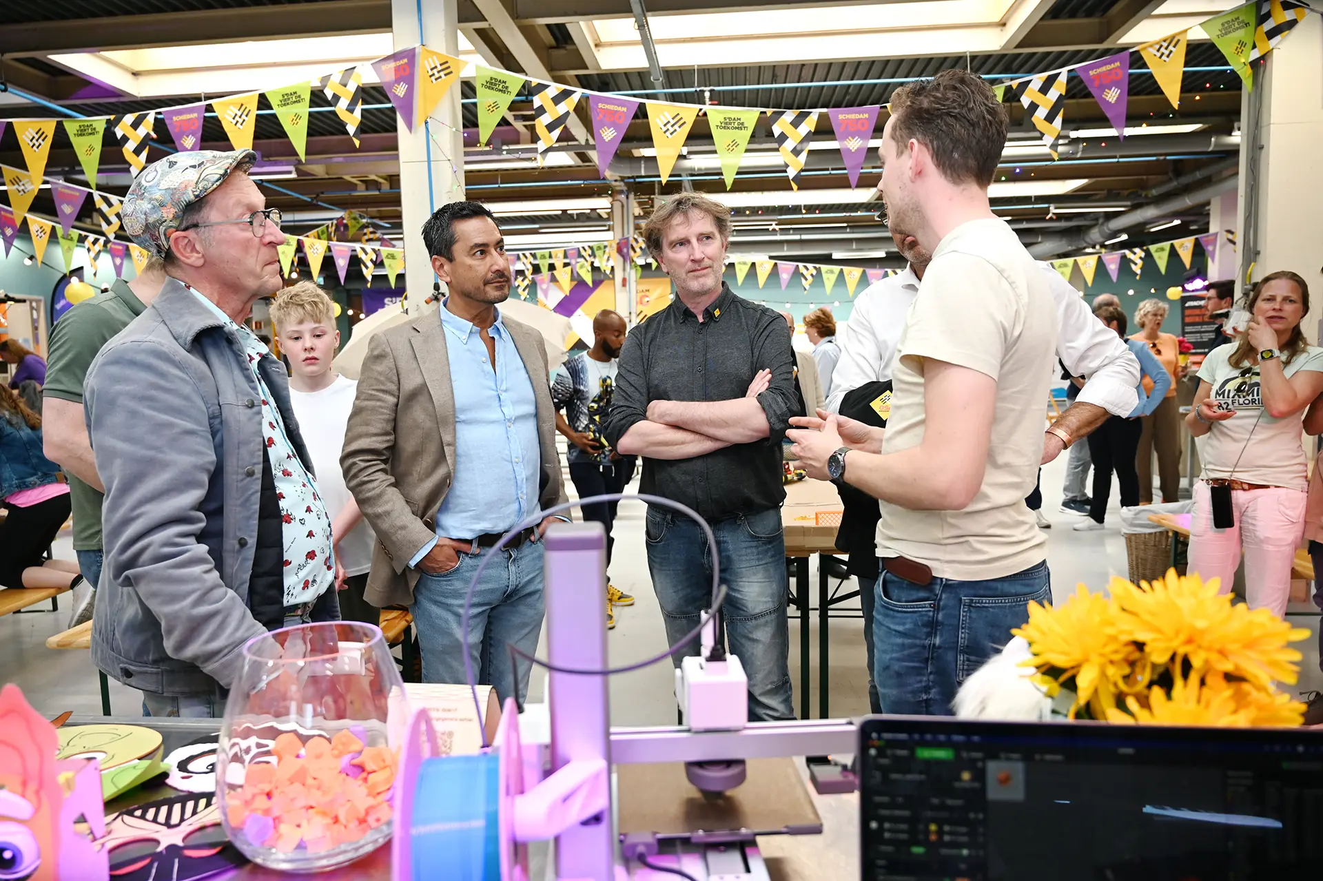 Wat gebeurt er achter die (vaak hoge) muren van allerlei bedrijven in Schiedam? In ons feestjaar maakte je op 4 dagen gratis kennis met tientallen ondernemers die feestelijk hun deuren openen. Het Bedrijvenfestival Schiedam was interactief, verrassend, toegankelijk, imposant én informatief. Meer dan 6.000 bezoekers fietsten of liepen naar tientallen bedrijven en ontdekten welke producten we in Schiedam allemaal maken. Jong en ouder proefden, voelden, bekeken, reden mee, beluisterden, roken, maakten zelf dingen en liepen mee met een rondleiding. Zij ervaarden hoe de bedrijven zich voorbereiden op een duurzame STAD VAN DE TOEKOMST met robots, automatisering en bijzondere innovaties.